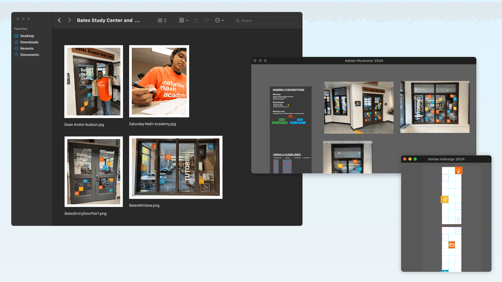 Bates Study Center gave me the opportunity to create playful stickers and site branding alongside a math-centered logo!