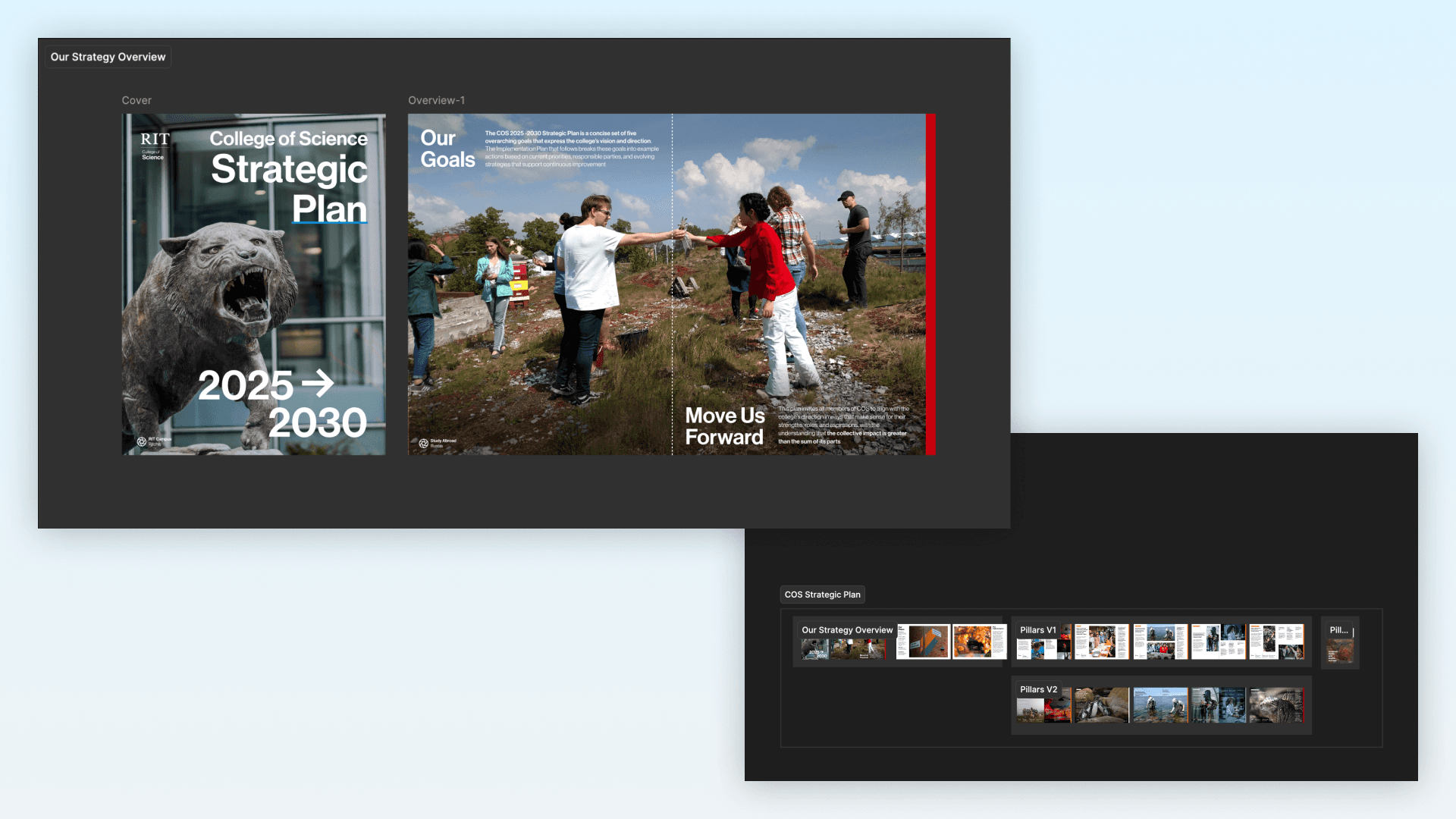 COS Strategic Plan was designed to be visualized goals released to staff and faculty, sprinted in Figma and laid out in InDesign
